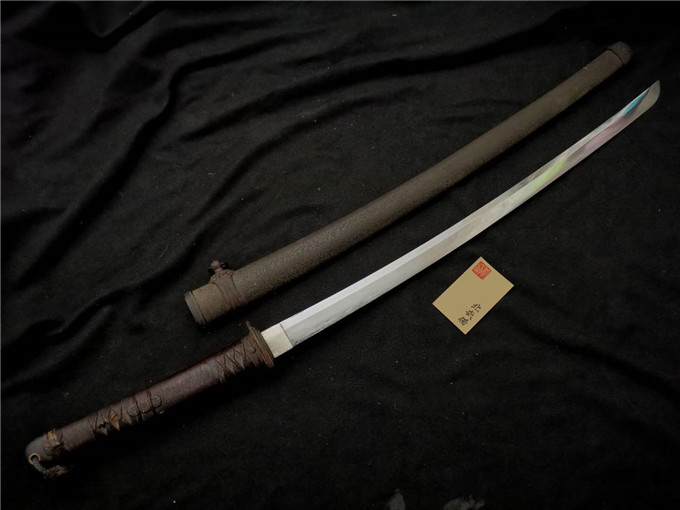 最后三图为正永打造的菊水刀 数据: 全长~含鞘全长99.5厘米 刃长~刃长68厘米 元幅~元幅3.2厘米 先幅~先幅2.35厘米 元重~元重0.75厘米 先重~先重0.55厘米 楠木正成是日本有名的悲剧英雄,其尽忠职守的事迹被后人所称道。凑川之战兵败,时年四十三岁的正成留下了“七生报国”的辞世名句并自尽。后人敬仰其尚武精神在凑川修建了纪念楠木正成的凑川神社。 明治维新改变了日本在世界的地位,全民一心的新时代培养出跻身于世界前列的日本海军。海军的实力雄厚,高官多是旧时代倒幕效忠天皇的藩士,因此遵循尊皇思想的海军以楠木正成作为效忠君主的典范,凑川神社自然也就成了海军思想的道场。“七生报国”也成为时下最热血的“爱国口号”。 明治年间的日军凭借海军力量发动对华侵略战争取得了意外的胜利。自此日本开始着重军国主义建设,妄想靠蛮力统治东亚乃至世界。昭和六年九月十八日(1931年9月18日)日本陆军蓄意制造柳条湖事件,并一举突袭北大营,史称九一八事变。自此日本军国主义对中国开始了长达十四年的计划性侵略。 尽管今天侵略者的后代不承认战争的残酷罪恶,我们依旧可以通过收集战争时期的物品来还原战争时期的面貌。仅从军刀来说,北武备专业收藏在“九.一八”八十九周年纪念之际,重磅推出一支极为特殊的军刀来证明日军在战争中的实际表现。 这是一支保存极为完好的三式军刀,完整的外观不仅是后人对和平珍重的渴望,也是对历史最大的尊重。通过完好原貌我们可以对应到三式的制作背景:1941年日本陆军在大陆战场频频失利,冥顽不化的军国主义妄图开辟太平洋战场挽救对日有利的局面。海军疯狂的开支导致陆军的军备严重缩水,代表性的九八式军刀也被简化成了新样式“三式”。 这支早期三式军刀拵保留着最原始的成色,难得的是采取木胎髹漆。众所周知陆军刀由于使用强度高,应用环境杂,通常会采取铁皮鞘进行包覆,高级别的拵才会使用铝皮鞘或木鞘直接进行刷漆。尽管木鞘娇贵但因为保存极为完好丝毫没有存在掉漆现象,所有金具更是保存如新。 早期三式军刀的刀柄一改以往的缠法,并做了上漆防水工艺,如此成为了是否改装的一道凭证。本刀不仅原柄原缠,目钉更是原始目钉,说明此刀在原刀主时期也是珍重的佩戴品而非肆意挥霍的工具。 拔出刀身,原磨的刀身没有实战带来的损伤,最大程度保留着当年制作时的风貌。中规中矩的刀身敦实厚重,满足军刀定寸保留着生茎。锻造精良可嘉,一丝不苟。军刀作为二战紧要的装备品,还能带有精良的传统向制作工艺的,几乎只有日本了。烧刃在良好的地铁配合下显得自然清新,有日本好刀的刃文优点。尽管这是一支战时稍显匆忙的产物,但依旧保留着传统工艺的审美,也难怪历代主人为何如此珍重了。 此刀生茎在铭 极为珍贵 鑢目切鑢。表铭七生 刀锻冶道场 正永 里铭为昭和十八年九月日。这是以凑川神社为荣并在此附近为海军制作的菊水刀锻冶群的生产口号(满铁的叫“兴亚一心”)。1933年日军在喜峰口战役中失利后改进了军刀的样式,在1934年诞生了九四式軍刀拵并成立了高级日本刀(军刀)制作的传习所和锻炼会(靖国刀系统)。海军刀的变革在1937年实施,新样式的太刀型海军刀被叫做九七式海军刀。随后在1940年海军系统也在凑川神社成立了专供海军高级指挥官佩戴的本锻炼“菊水刀”。由于海军军官较陆军少很多,军刀装备量也没有陆军大,因此菊水刀的制作数量据统计只有四千支左右,大约为靖国刀制作数量的一半。菊水刀制作群里的正孝 正直 正明 正永等也都是可以与靖光 靖宪 靖武 靖德等匹敌的名工。 本刀极为有趣的一点是作为“本锻炼”制作级菊水刀工,竟然没有使用海军得意的菊水标,而是采取了陆军省授命的五星标。这是因为时值1943年,日海军在太平洋战场上也遭到了美军的沉重打击,海军的军官数量及装备量开始缩减。而在大陆战场的陆军受大扫荡影响而加强了增派部队。原来给海军提供高级军刀制作的菊水刀工之一正永得空时便以陆军省委托名义生产了这支高品质本锻炼军刀,并在物资匮乏的43年得到了时下很高级的装配。 其实军国主义的掠夺并没有给本国民众带来根源性福利,仅从一支战争后期的精品军刀上依旧可以看到军备带来的开销缩影。疯狂的行径最后遭到了正义联合的重击,毁灭性的灾难不仅是法西斯主义清醒过来,全国民众更是跟着遭殃了几十年。即使今天右翼后代依旧不认账,我们也团结一致的能拿出最有力的物证来还原当年被迫抗击的艰苦岁月。本刀可作为博物馆级典型品向后人传递和平的不易。最后在这个特殊的日子里,北武备同大家一起牢记屈辱、努力奋进 、吾辈自强!