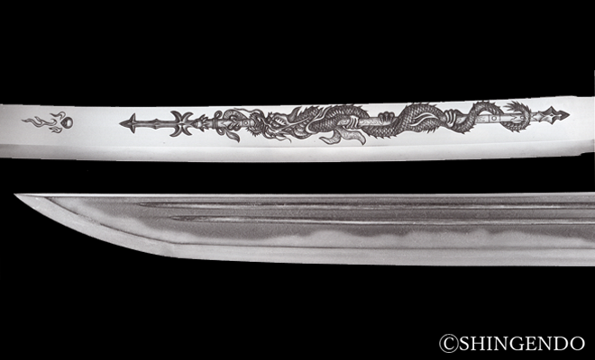 我们今天所说的“现代刀”,指的是公元1876年(明治九年)三月二十八日颁布“废刀令”以后所生产的刀剑。由于日本社会背景的巨大转变,不仅是刀剑业,整个日本社会的手工业都受到了前所未有的冲击。(近)现代刀的时间跨度大,制作背景复杂,生产数量多。我们会逐步梳理出(近)现代刀的系图供大家来参考。 由黑船所引发的变革 明治维新是日本进入新时代进行一系列变革举措的总称。藩政时代的种种制度被悉数推翻。十几年前(1853年)的黑船入侵打破了日本人对强大的固有认知,维新运动的风潮便是要把西方国家的所有先进技术尽可能的带到日本本土上来。 军事是强国之本。日本自古四面环海,四岛之间坐落火山无数,火山爆发带来的地震和海啸导致灾难不断。因此日本一直以来渴求先进的生产技术和高层次的文明来弥补环境带来的先天性条件不足。古代的信息不发达和江户时期的锁国政策已经让日本开始夜郎自大,不知道外面世界的风起云涌,直到美国人佩里马修的舰队开到日本江户湾,日本人才意识到敌我实力的悬殊。自此萨 长藩为首的有志青年开始组织倒幕运动,经过安政大狱、戊辰战争等血的洗礼教训,在1868年日本迈入了新时代。 新时代的日本将权力中心归还给了天皇,并废除了曾经高高在上的幕政武家制度。在军事方面也进行了彻底改革,由原来的士族武士群体改成了“四民平等”的军队制度。陆军参照德军模式,海军参照英军模式,并且依照日本的国土环境特点重点培养海军,这也是日本军国主义后来称霸亚洲的一颗重要萌芽。 新政府废除旧时代的士族制度及福利,旧士族手里腰间引以为傲的刀剑自然也好不了多少。明治三年(1870)开始,政府新规已经不许旧士族佩带刀剑,到了明治九年(1876)更是收缴旧士族手里的刀剑以防原武士阶层不满新政府管理聚众叛乱。(明治十年的西南战争就是很好的例子)一时间四海皆知的名刀传说在蒸汽齿轮的轰鸣声下消失的无影无踪了。 前文说过幕末政局引领的新新刀时期,是刀剑史上十分激昂有趣的时期。到了新时代的政局引导下,颇有一刀切的意味。好在明治天皇也是一个十分热爱本土传统文化的君主,于是刀剑类作为传统文化的一环,在明治三十九年(1906)四月四日选出两个较为优秀的刀工作为“帝室技兿員”来代表官方继承传统的文化,他们是前代以雕物技艺见长的月山云龙子貞一(日本刀幕末三大雕工之一)和戊辰战争中随军征战的刀工菅原包則。 月山貞一和菅原包則不仅是刀剑史上的长寿刀工,也早在前代的新新刀期里有一定的影响力,故而被选拔成为帝室技艺员。 月山貞一(1836-1918 天保七-大正七) 月山貞一本名月山弥五郎,天保七年出生在近江国犬山郡须越村。七岁时成为水心子正秀高徒之一月山弥八郎貞吉的养子。十一岁时就能和养父貞吉学习做刀而开始积累经验了。现存貞吉作品中,有着貞一十六岁时为其精美雕刻的添铭来证明貞一在青少年时期已经成为行业的时代新秀了。庆应年间的动荡使得大坂成为了浴血格斗的主战场之一,年长的时代名工栗原信秀(栗原信秀也是日本刀幕末三大雕工之一)也搬到大坂地区制作刀剑来供应市场,年轻的月山貞一也颇有后来居上的气势,新新刀期的荣耀在大坂地区留下了最后一抹光辉。 (月山貞一的雕龙) 貞一在幕末时期继承了父辈还原的绫杉肌制作法,并根据时代需求制作了不少柾目肌类耐于劈砍的豪壮杰作。赶上新时代废刀令以后,刀工的生涯遇到了迷茫,开始研习古刀类名作的特点来制作写物类打开新的市场。终于在近乎无果的坚持下,三十年后盼来了来自官方的肯定及正名,成为当时至高的行业代言。