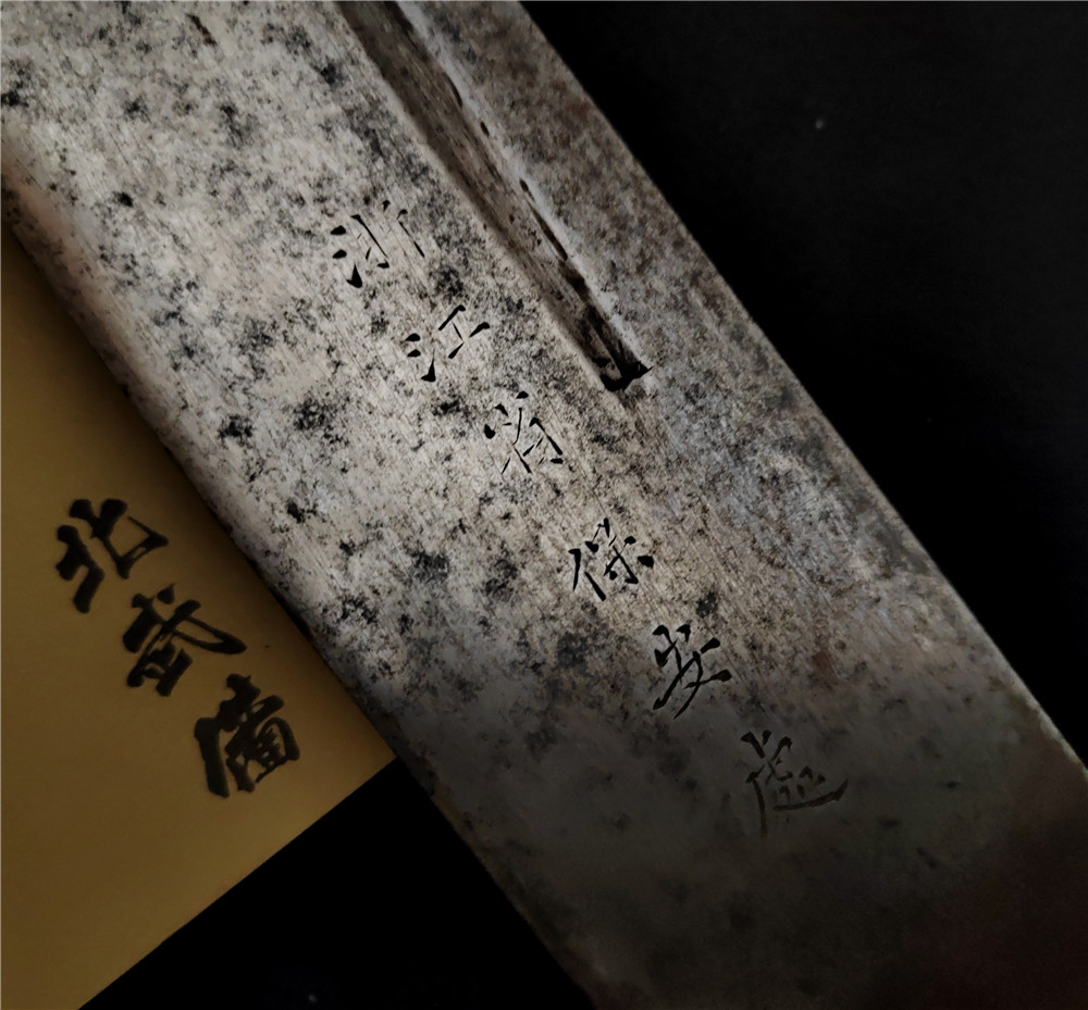 含鞘全长72.5厘米,刃长53.8厘米,根部宽4.8厘米,刀头宽9厘米,刃厚0.8厘米(最厚处),含鞘重1477.3厘米。