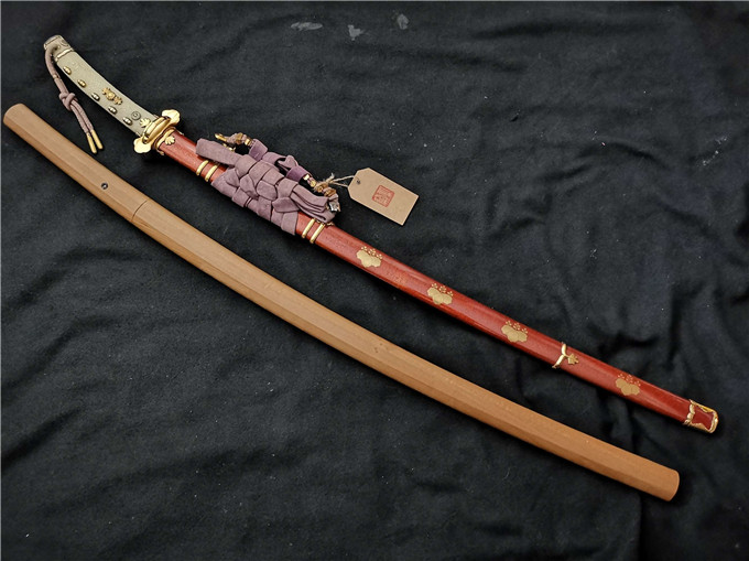 这款御大典菊水奉纳,是以二战时期供奉在凑川神社里的海军奉纳原品余鐵打造,和真品只差了铭文余鐵两字,其余都一模一样,非常难得的好藏品!御大典太刀,顾名思义就是日本最高统治阶级在出席重要的活动才会佩戴的一款太刀,级别非常的高,是身份和权利的象征!