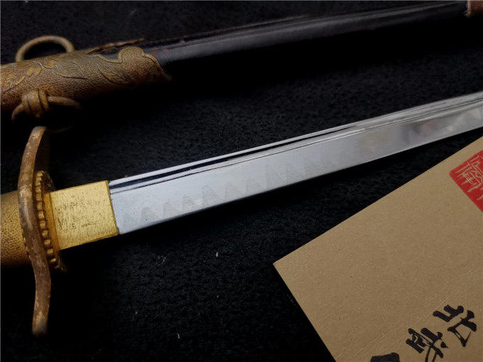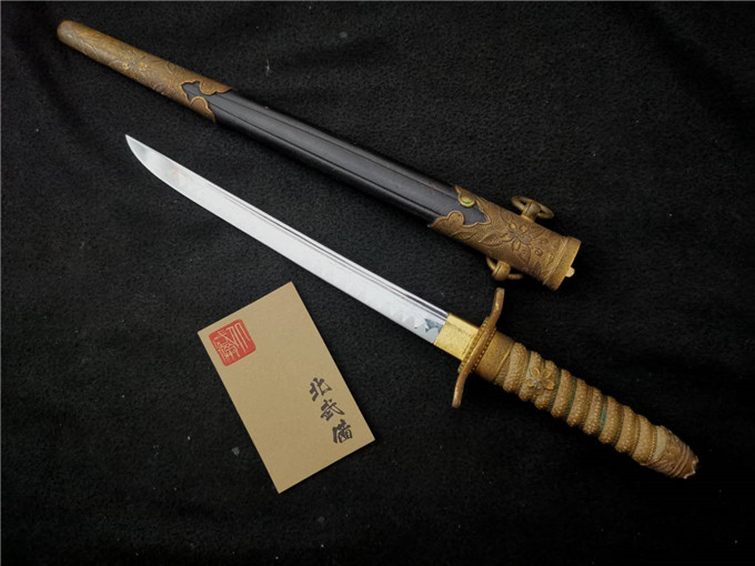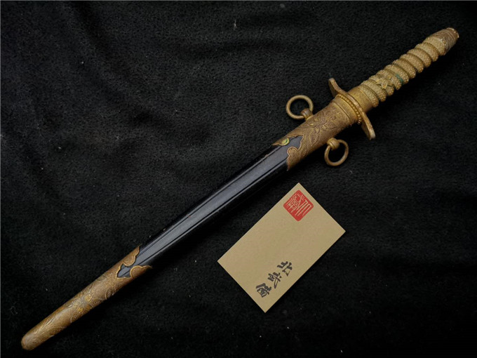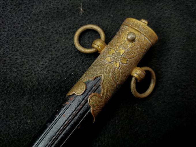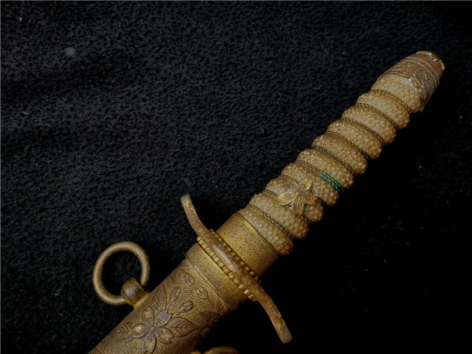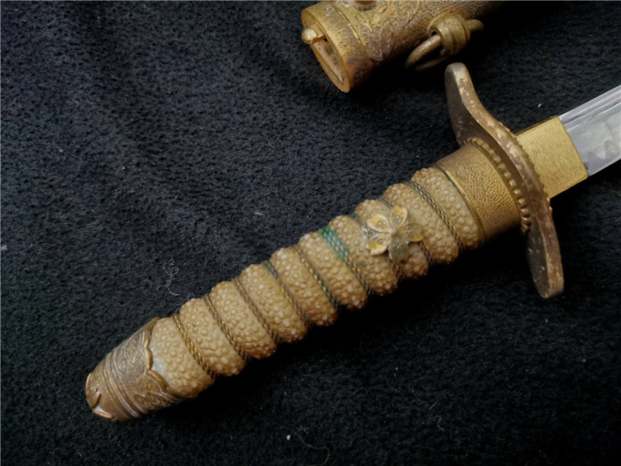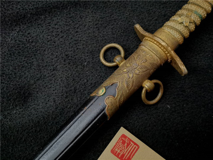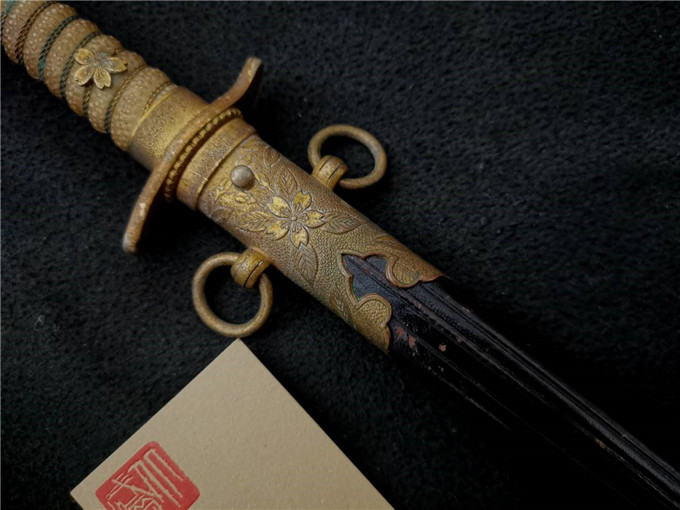 这把二战时期海军士官礼仪佩剑整体状态非常不错,赛璐璐的握把柄丝完整,机制的剑身镀铬层完整无脱落,金具完整无缺,牛皮剑鞘保存状态一流,是一把非常不错的好藏品。