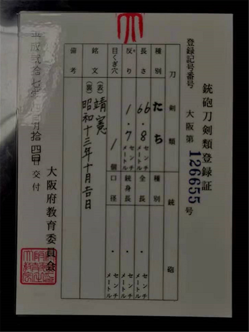 数据: 全长~含鞘全长96厘米 刃长~刃长69.1厘米 元幅~元幅2.95厘米 先幅~先幅2.05厘米 元重~元重0.75厘米 先重~先重0.6厘米 靖宪本名叫小谷宪三 1909年生于广岛,作为执行主任 靖国刀匠里主任梶山靖德的助手,1933年时就进入日本刀锻炼会了,1935年7月开始锻刀,曾有刀铭为“靖宪”“武宪”(梶山靖德的刀铭也为“靖德”“武德”)十年期间加起来共锻造1600口优质的刀剑 ,这个数量可能听起来很多很多,但经过军队千万人的稀释,将领指挥的收藏,战场上的损毁缴获,所剩之物寥寥无几, 保存状态优异的更是凤毛麟角 。1933年由栗原昭秀为技术核心起草的日本刀复苏计划得到了议院的支持,翌年由他本人做技术总监的日本刀传习所和开在东京九段靖国神社内的日本刀锻炼会先后奠基。 这支靖䜢特注装具保存状态极好,柄绳完整包鱼皮,卡榫闭锁灵活有力,入鞘带响闭锁功能完好,鞘无凹原漆保存百分之九十五以上,刃部完整无伤刃纹清晰,表面有来回出鞘留下的磨痕(近百年的东西瑕不掩瑜)余下完美,铭文漂亮,这支靖䜢整体状态极品,刀身锻造比较纤细,装具早期镂空寿屋兵工厂制作(特铸装),符合将官佩刀标准,绝对是不可多得的精品入藏级别藏品! 栗原昭秀在招募民间的名工安排进传习所的同时,也把锻炼会的要务交给军部管理 ,高质量的招募筛选使得锻炼所这批名工都有了统一的铭切格式,都是以靖国神社的“靖”或崇尚武道的“武”为铭头 这批名工所做的刀也被叫做靖国刀或九段刀,靖国刀的制作理念和传习所那边的传统锻炼大抵相同 ,由于军事化的管理和师徒制的明确分工,使得其质量 效率 执行标准,产品定位相较于传习所那边更有着整齐严谨的军队气质。 靖国刀全部采用传统工艺的制作流程,所以在产量上一直没有很大的提升,从1934年奠基成立到1945年战争终止 ,靖国刀匠前前后后才赶出来八千一百多支刀剑来,又因为其产品定位的特殊性 靖国刀在战时往往作为军校高材生或在任军官的奖励 由天皇为代表的军部省作为恩赐的礼物赠答给军国主义奉献的“有志青年”所以靖国刀里出现恩赐刀 御赐刀的机率是很大的, 这样的因素也使得靖国刀一刀难求 ,战时亲付战场的将士 采买武备的军官 都希望能拥有一支靖国刀为军旅生涯的最高荣誉。 今日北武备特别推出一支靖国刀里的精品与好朋友们共赏,本刀乃是靖国里排位靠前的名工 靖宪所作的一支娟秀清丽的上品 。 北武备收藏这只靖宪制作水准已无需多言,作为锻冶总工靖德的得利助手其制作功力完全无可挑剔,其锻造精密 其烧刃素养,如果不看茎铭信息仿佛如后期精心修饰的造兵刀一般干净利落,茎的处理也是一丝不苟 ,看不见的地方同样做了精心的修整 ,楷书铭切的工整錾刻更是体现了高质量,高品位的制作态度 。 可以说这样一支精工细作的刀剑要不是有制作年紀作为衬托,是难以相信是诞生在战火纷飞的年代的,此刀长短合理配重优异,在强调高超的细节技术同时并没有忽略了好用好带的本质问题,此刀无论是作为战争的特殊纪念品,还是作为一支近代美术刀剑复兴的初期作品,都是个不错的选择。 此外更附有几近如新的九八式军刀拵,此拵应该是经历过战场的恶劣环境而使得国防绿色的光泽鞘表面稍有剐蹭 ,其余完好如初,柄卷更是弹力尚佳没有严酷的使用 所有金具还保留着当年新做时的镀涂漆艺 ,这规整的样式和清晰的图案 是当时服务以天皇为代表的军部专属配件制作商寿屋商店的得意之作。 寿屋商店在明治六年(1874)时就开始服务明治天皇的军部军属配件制作了, 在二战之后更是一度将精益求精的态度发展到玩具业上 ,时至今日已然是高品质玩具的代表名词 。 此刀的装配金具和柄木的截面都有数字一致的编号,根据茎铭的年纪可得知1938年时军刀的需求已然开始提升, 高质量的装配也开始高产量起来, 手工配合带来的细微差异不能完全的贴合批次生产的量产部件,所以这也是这只刀为什么装配部件要写上编号 至今还可以拆装自如但又严丝合缝的关键条件。 这么一支保存优秀的拵付靖国刀本身已然难能可贵,但想想此类刀剑曾经的佩戴者哪个不是位高权重的侵略军官 ,值得警醒的是此物能被我们收藏珍视,不仅仅是出于对冰冷钢刀的热血柔情,更是对冷酷历史的温情回忆!!