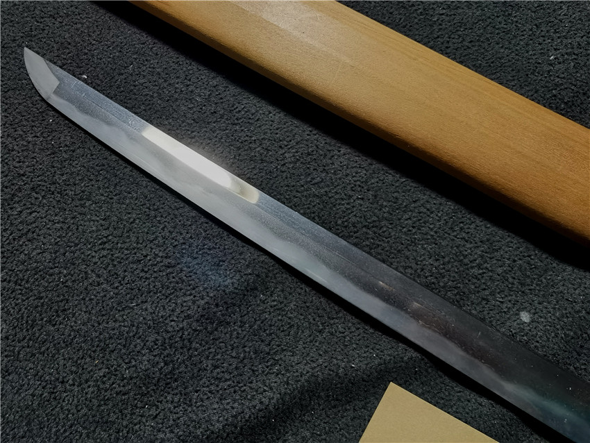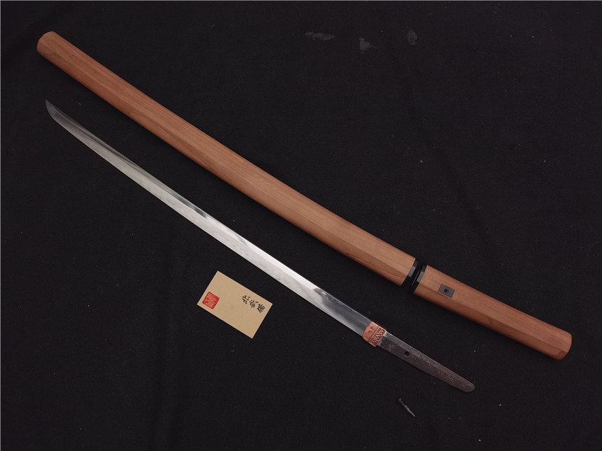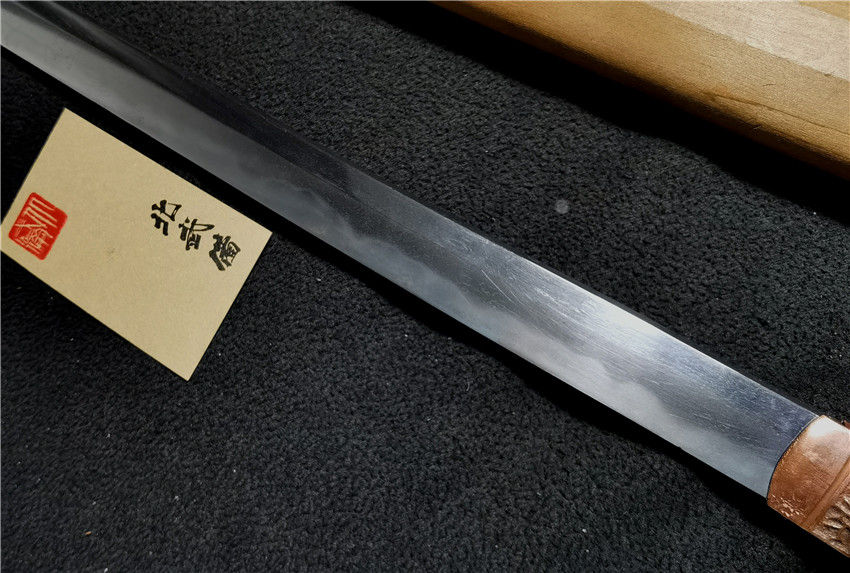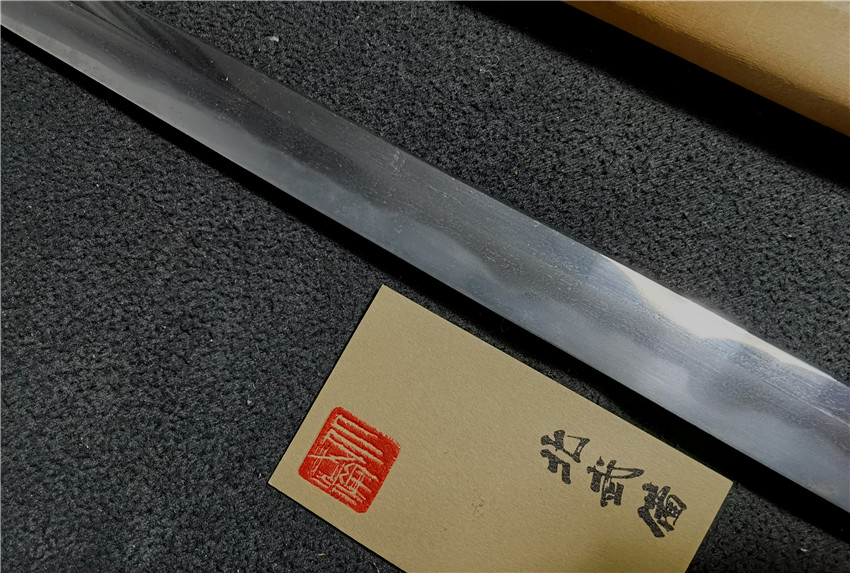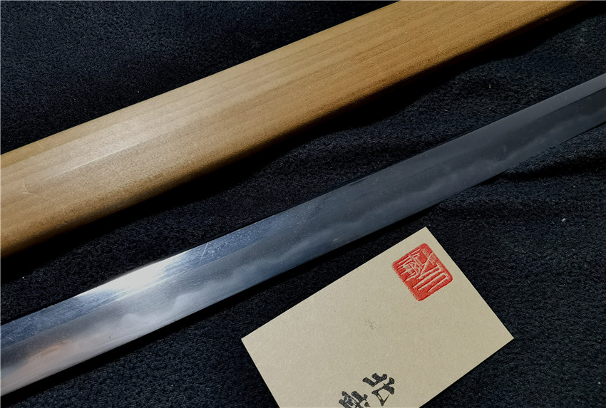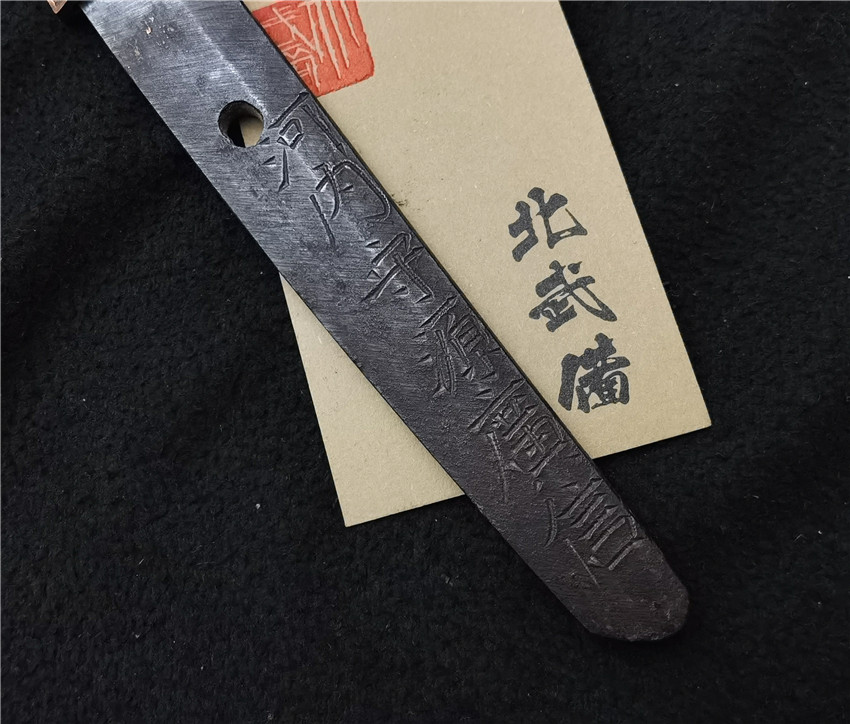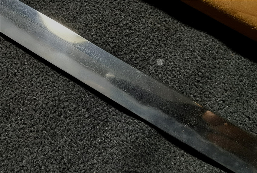 数据: 全长~含鞘全长85.3厘米 刃长~刃长63厘米 原重~原重0.6厘米 先重~先重0.4厘米 原幅~原幅2.55厘米 先幅~先幅1.9厘米 於洛阳伊藤权左卫门尉广信是第二代广信,第一代是宽永时期的人,第一代和第二代都住在山城国制作刀。二代广信将改名为洛阳住伊藤权左卫门尉广信、洛阳住于纪州藤原广、伊藤大和守源广信等,第三代继承了河内守,四代被称为弥左卫门尉,在享保时期大显身手,现存的作品很少,资料性很高。 河内守源廣信的资料很少,这支他的作品整体状态非常好,朴木鞘状态完整,生颈在铭,刀条原始状态没有整理过,刃纹清晰漂亮,地肌锻造紧密可以清晰的看到纹理走向,整体来说除了进出鞘的磨痕还算是一支比较不错的好刀,适合初级藏家入门的藏品。(可以出具中国古兵器研究协会鉴定证书) (约300年左右) | ||||||||||