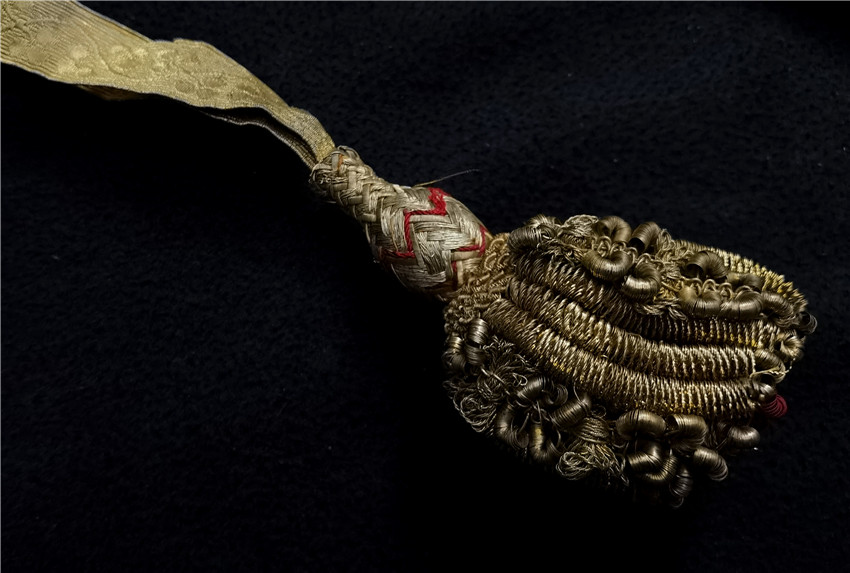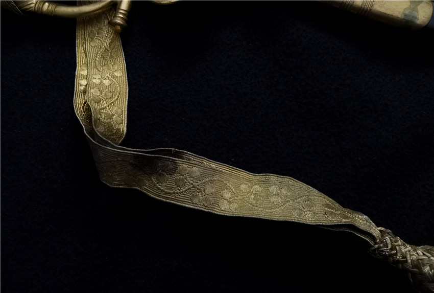 数据: 全长约95厘米(37.5英寸),刃长78.7厘米(31英寸)。 十九世纪爱尔兰法官佩剑,整体状态很不错,黄铜鎏金的剑饰非常的漂亮,独特的握把设计,国王的皇冠加上三叶草的叶子,象征着权利和公正,剑身灼刻了精美的纹饰非常的漂亮,剑柄绕银丝保存非常完整,刀续用非常细的金属丝编制而成,这种大大法官佩剑极其稀少,皮鞘尾年代久远略有折痕其余完美(折痕已经标注)。 | ||||||||||