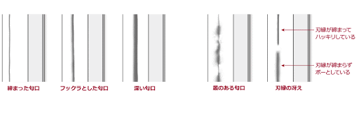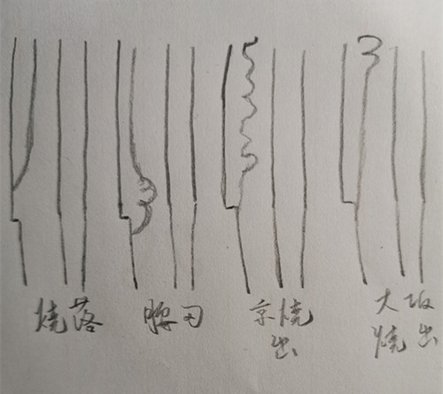 2.关于烧出 烧出是烧刃的起始部分,通常在刃区之下的磨出位置。